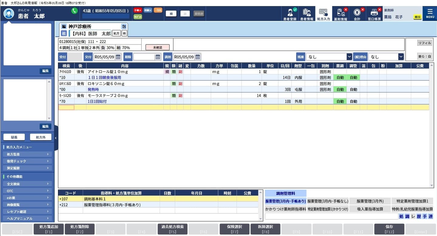 また、薬袋のサイズや別包指示等の設定は患者様単位で記憶され、次回に引き継がれます。