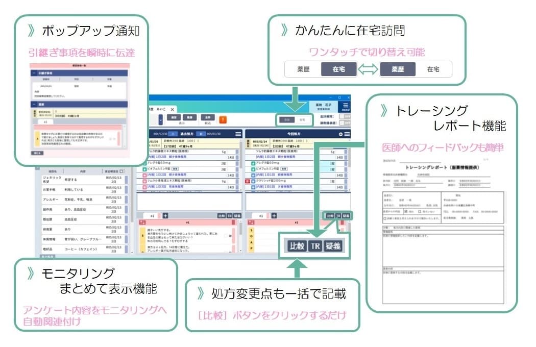 タブレットで簡単に運用ができ、訪問薬剤・24時間対応が可能です。